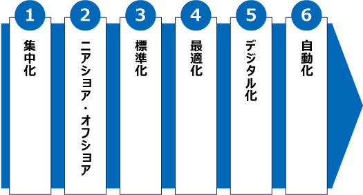2010年前半のビジネス・プロセス・アウトソーシング(BPO)のテーマは、国内外に分散した業務集約による集中化でしたが、集中化した業務のニアショアやオフショアへの移転や標準化による業務オペレーションの属人化の回避を実現しています。